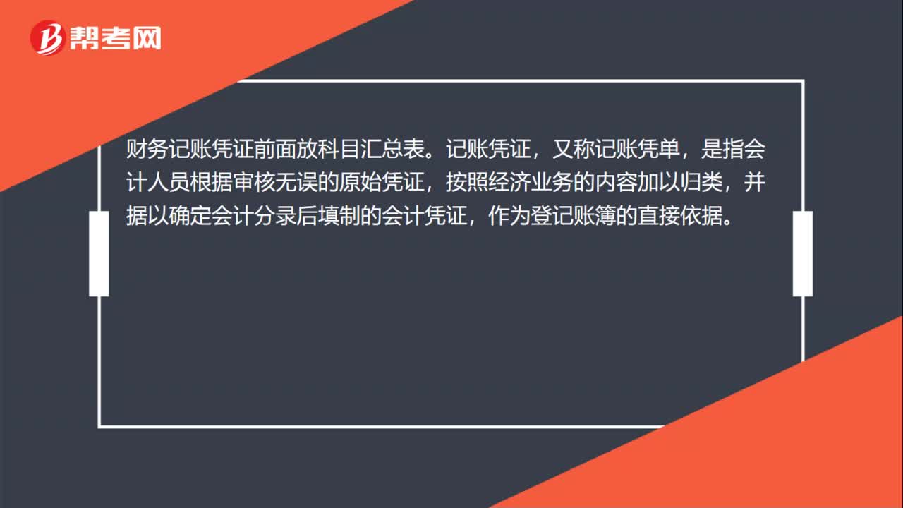 22財(cái)務(wù)記賬憑證前面放什么表?:財(cái)務(wù)記賬憑證前面放什么表?財(cái)務(wù)記賬憑證前面放科目匯總表。記賬憑證,又稱記賬憑單,是指會計(jì)人員根據(jù)審核無誤的原始憑證,按照經(jīng)濟(jì)業(yè)務(wù)的內(nèi)容加以歸類,并據(jù)以確定會計(jì)分錄后填制的會計(jì)憑證,作為登記賬簿的直接依據(jù)。