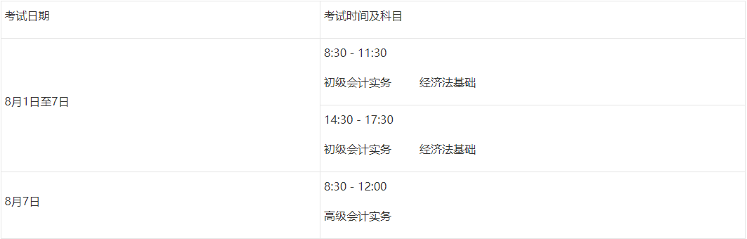 (二)高級資格考試:8月7日8:30-12:00舉行《高級會計實務》科目考試。