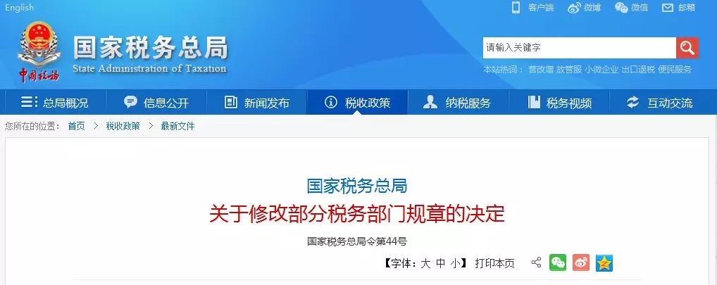 《國(guó)家稅務(wù)總局關(guān)于修改部分稅務(wù)部門規(guī)章的決定》,已經(jīng)2018年6月5日國(guó)家稅務(wù)總局2018年度第1次局務(wù)會(huì)議審議通過(guò),現(xiàn)予公布,自公布之日起施行。