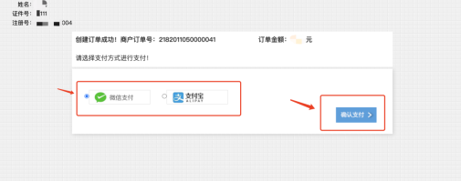 (4)考生可選擇“微信支付”或“支付寶”支付方式后,點(diǎn)擊“確認(rèn)支付”;