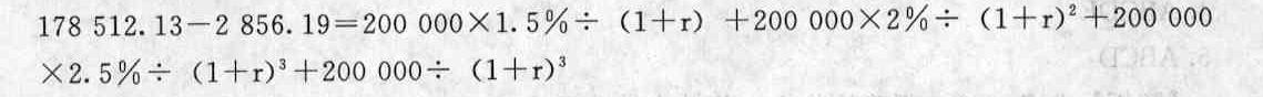 ④根據(jù)內(nèi)插法計算r如下:(r-6%)/(7%-6%)=(175 655. 94-178 512.13)/(173 638. 56-178 512.13)經(jīng)計算,r=6. 59%