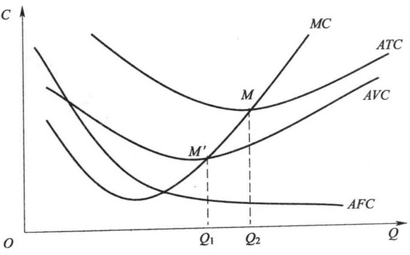 - C 、平均總成本曲線的最低點(diǎn)M低于平均可變成本曲線的最低點(diǎn)M'
