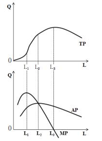 從圖中可以看出邊際產(chǎn)量的曲線MP是最先下降的。