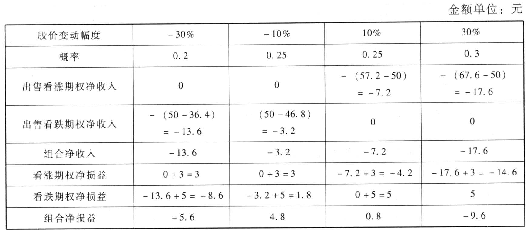 - 3 【綜合題(主觀)】若丁投資人同時(shí)出售1份A公司的股票的看漲期權(quán)和1份看跌期權(quán),判斷該投資人采取的是哪種投資策略,并確定該投資人的預(yù)期投資組合收益為多少?