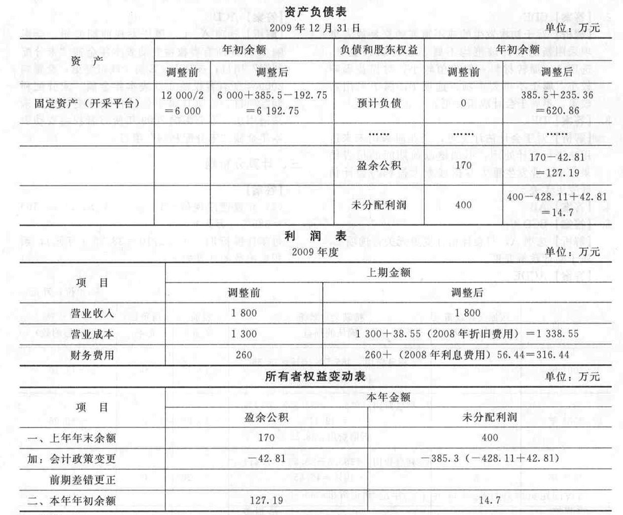 參考答案(1)棄置費(fèi)用現(xiàn)值=1 000×(P/s.10%,10)=385.5(萬元)每年計(jì)提折舊=385.5/10 = 38.55(萬元),累積影響數(shù)的計(jì)算如下: