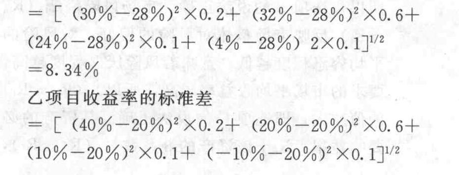 乙項(xiàng)目的預(yù)期收益率=40%×0.2+20%×0.6+10%×0.1-10%×0.1=20%