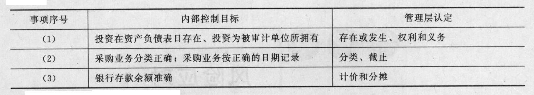 (2)針對資料二(1)到(3)項,請分別指出各項控制的控制目標(biāo)和相應(yīng)的管理層認(rèn)定。