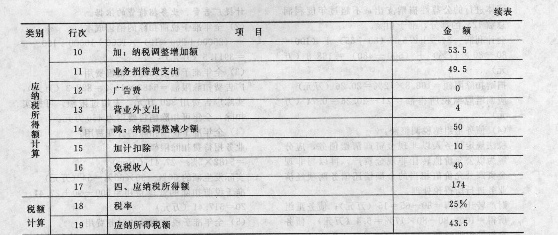 (5)應(yīng)繳企業(yè)所得稅=(2000+100-700-600-5-94.5-500+49.5-70+4-10)×25%=43.5(萬元)