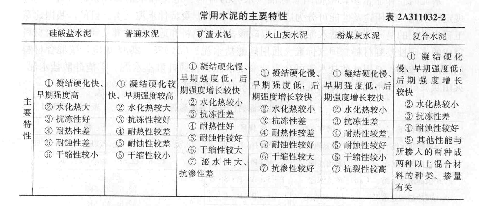 本題考核常用水泥的主要特征(見附表)。礦渣水泥具有干縮性較大的特性。