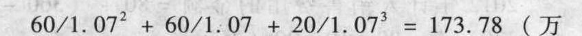 最低租賃付款額的現(xiàn)值=60/1.073+