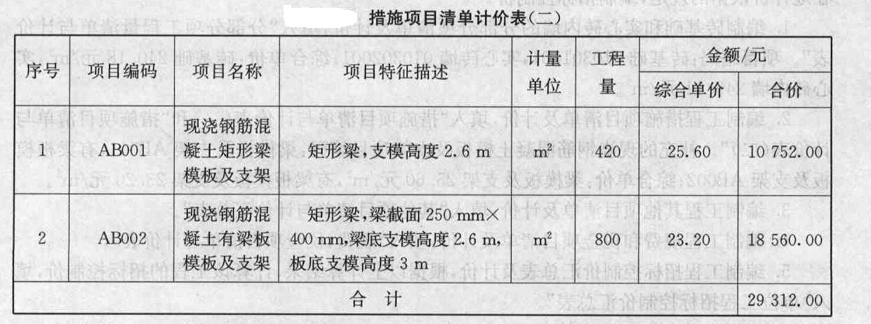 注:本表適用于以綜合單價(jià)計(jì)價(jià)的措施項(xiàng)目。