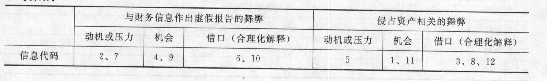 - 綜合題(主觀)注冊(cè)會(huì)計(jì)師在對(duì)甲公司了解的過(guò)程中,獲得下列有關(guān)甲公司的信息: (1)甲公司的存貨為芯片組,其體積小、價(jià)值高,且流通性高。 (2)因高度競(jìng)爭(zhēng)導(dǎo)致甲公司的產(chǎn)品毛利下滑。 (3)若干主管及員工近來(lái)對(duì)公司晉升及獎(jiǎng)勵(lì)產(chǎn)生不滿。 (4)經(jīng)常發(fā)生重大關(guān)聯(lián)方交易。 (5)財(cái)務(wù)經(jīng)理近來(lái)因個(gè)人投資失利,導(dǎo)致債臺(tái)高筑。 (6)管理層屢次以重要性的判斷為由,試圖為不適當(dāng)會(huì)計(jì)處理進(jìn)行解釋。 (7)管理層報(bào)酬的主要部分,是根據(jù)甲公司經(jīng)營(yíng)成果是否達(dá)到特定目標(biāo)而定。 (8)管理層對(duì)倉(cāng)庫(kù)管理顯得漠不關(guān)心。 (9)在第三地注冊(cè)公司作中間交易。 (10)管理層對(duì)股價(jià)或獲利趨勢(shì)的維持特別關(guān)心。 (11)資產(chǎn)的記錄不全。 (12)出納人員近來(lái)生活方式發(fā)生重大改變,不但購(gòu)買豪宅,且購(gòu)買名車代步。要求:請(qǐng)根據(jù)舞弊的分類和風(fēng)險(xiǎn)因素的區(qū)分,將上述12項(xiàng)信息適當(dāng)分類填入下表中,每一項(xiàng)信息勿重復(fù),每一項(xiàng)信息只要填入其代碼即可。