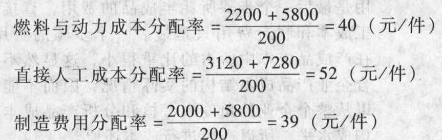 ②第二步驟:分配直接人工成本、燃料與動(dòng)力和制造費(fèi)用的約當(dāng)產(chǎn)量=100+100×50%+50=200(件)