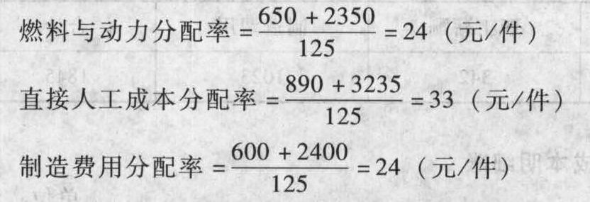 ③第三步驟:分配直接人工成本、燃料與動(dòng)力和制造費(fèi)用的約當(dāng)產(chǎn)量=100+50×50%=125(件)