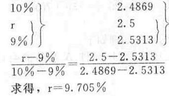 參考答案(1)由于:30 000=12 000×(P/A,r,3).所以(P/A,r,3)=2.5,則(P/A.9%,3)=2.5313(P/A.r,3)=2.5(P/A,10%,3)=2.4869所以,r在9%和10%之間。運(yùn)用插值法有:利率 年金現(xiàn)值系數(shù)