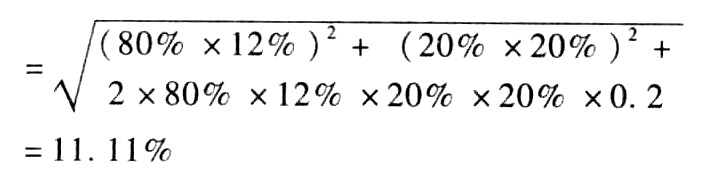 - B 、如果相關(guān)系數(shù)為1,則組合標(biāo)準(zhǔn)差為11%