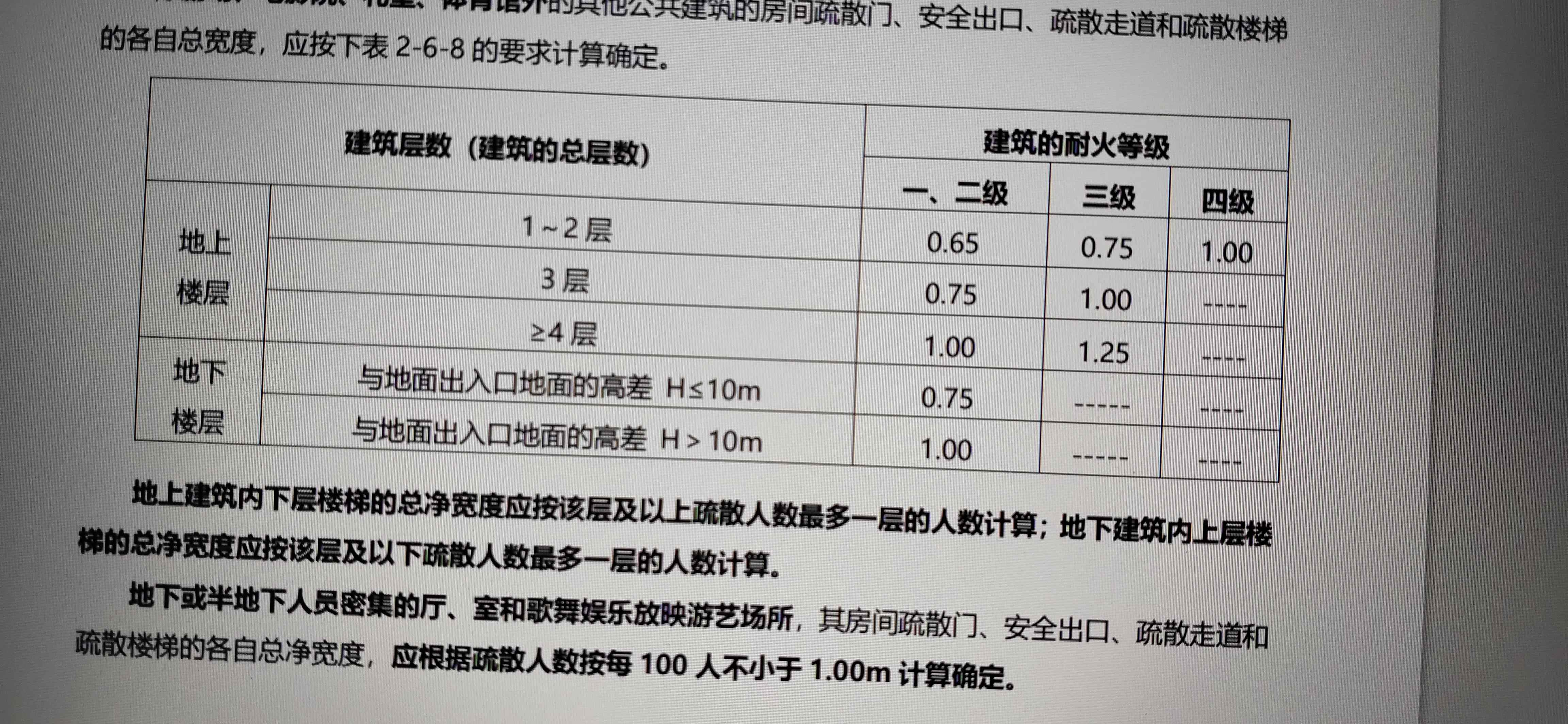 3. 在實(shí)際的安全規(guī)范和表格中,我們會(huì)發(fā)現(xiàn)這樣的標(biāo)注,例如“每百人應(yīng)提供X米的疏散寬度”,這就是指在一定的疏散人數(shù)下,需要保證的疏散寬度。