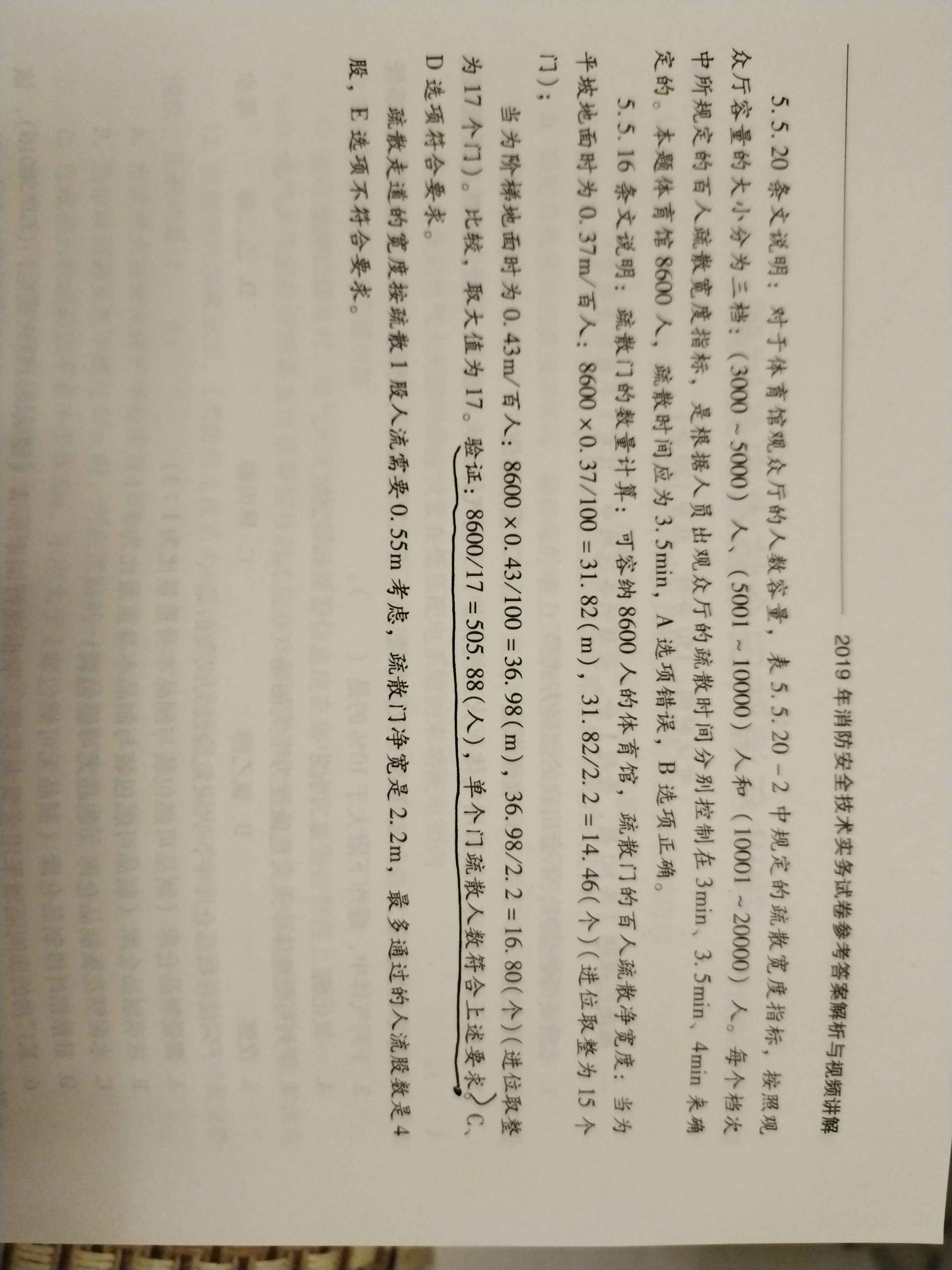 19年最后一道多選 單個(gè)門(mén)疏散人數(shù)要求是多少 為什么505.88符合要求?
