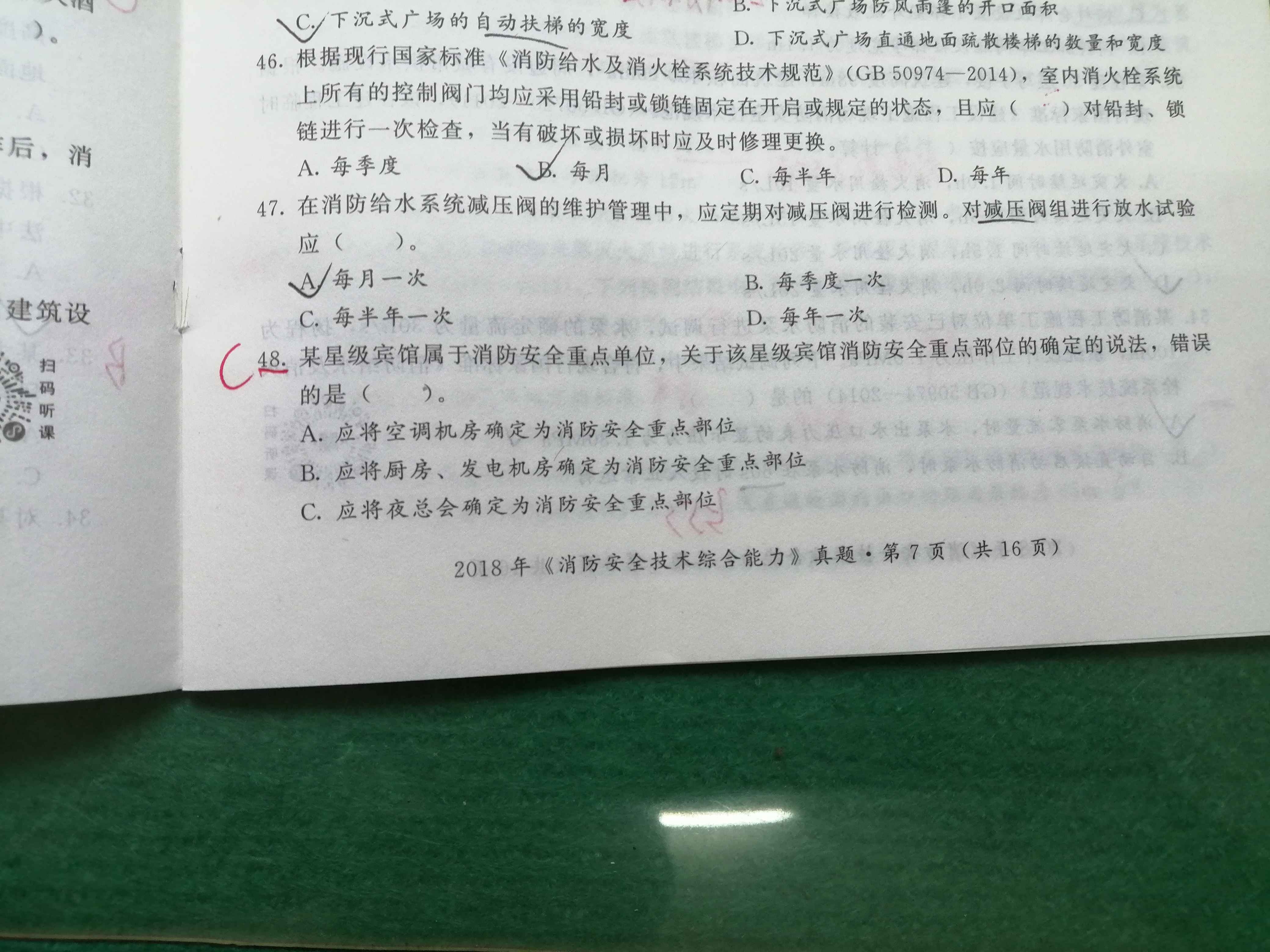因此,若48題中提到消防控制室不是安全重點(diǎn)部位,這很可能是一個(gè)錯(cuò)誤選項(xiàng)。