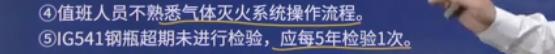 2. IG541氣體屬于惰性氣體,主要成分為氮?dú)?、氬氣和二氧化碳,因此按照?guī)定,IG541氣體鋼瓶的檢驗(yàn)周期應(yīng)為五年。