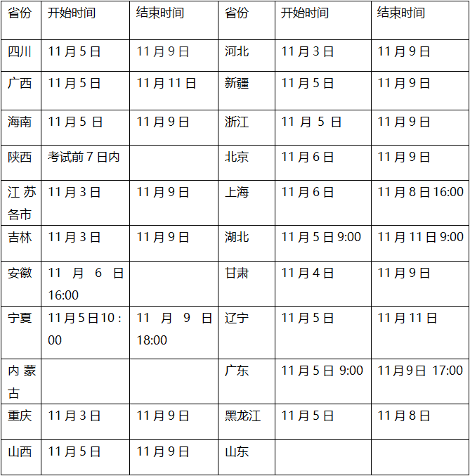 注:未公布的省份會在考前一周公布,請大家注意所報省份的人事考試網(wǎng)通知時間,及時下載保存打印。