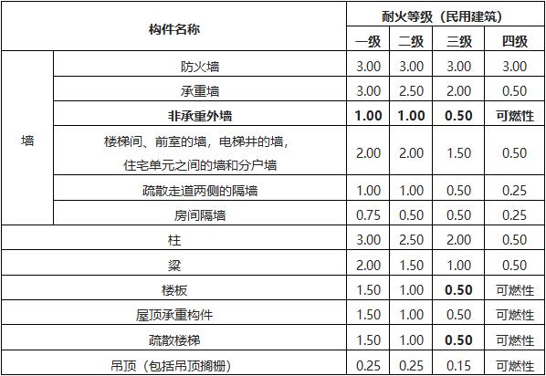 具體分級中,建筑構(gòu)件的耐火性能是以樓板的耐火極限為基準(zhǔn),再根據(jù)其他構(gòu)件在建筑物中的重要性和耐火性能可能的目標(biāo)值調(diào)整后確定的。
