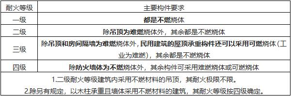 在防火設(shè)計(jì)中,建筑整體的耐火性能是保證建筑結(jié)構(gòu)在火災(zāi)時(shí)不發(fā)生較大破壞的根本,而單一建筑結(jié)構(gòu)構(gòu)件的燃燒性能和耐火極限是確定建筑整體耐火性能的基礎(chǔ)。建筑耐火等級是由組成建筑物的墻、柱、樓板、屋頂承重構(gòu)件和吊頂?shù)戎饕獦?gòu)件的燃燒性能和耐火極限決定的,共分為四級。
