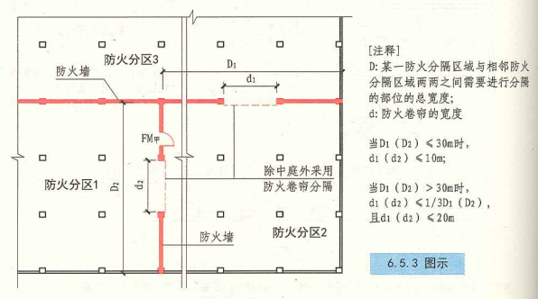 D.二層C、D兩個防火分區(qū)之間防火分隔部位的長度為40m,使用防火墻和15m寬的防火卷簾作為防火分隔物