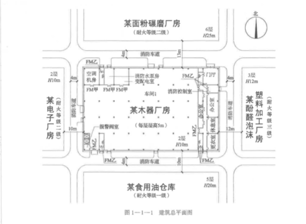 本案例主要分析下列內(nèi)容: 根據(jù)生產(chǎn)中使用或產(chǎn)生的物質(zhì)的性質(zhì)及其數(shù)量,儲(chǔ)存物品的性質(zhì)和儲(chǔ)存物品中的可燃物 數(shù)量等因素,分析木器廠房及周邊廠房、倉(cāng)庫(kù)的生產(chǎn)或儲(chǔ)存物品的火災(zāi)危險(xiǎn)性分類(lèi);根據(jù)建筑 高度,對(duì)木器廠房及周邊廠房、倉(cāng)庫(kù)進(jìn)行分類(lèi);并由此分析情景描述中涉及耐火等級(jí)、防火間 距、消防車(chē)道、建筑層數(shù)、平面布置、構(gòu)造防火、防火分區(qū)和安全疏散等建筑防火技術(shù)措施是 否符合國(guó)家有關(guān)工程建設(shè)消防技術(shù)標(biāo)準(zhǔn)的規(guī)定。