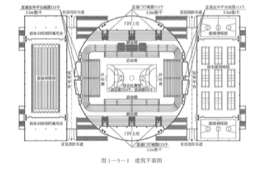 ( 1 )根據(jù)《體育建筑設(shè)計(jì)規(guī)范~ (JGJ 31-2003) 規(guī)定,體育建筑周圍消防車道應(yīng)環(huán)通; 當(dāng)因各種原因消防車不能按規(guī)定靠近建筑物時(shí),應(yīng)采取下列措施之一滿足火災(zāi)撲救的需要: