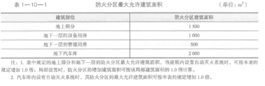 根據(jù)《建筑設計防火規(guī)范~ (GB 50016-2014) 和《汽車庫、修車庫、停車場設計防火規(guī) 范)) (GB 50067-2014) 的規(guī)定,該住宅建筑內(nèi)每個防火分區(qū)的最大允許建筑面積,不應超過 表 l 一 10-1 的規(guī)定。