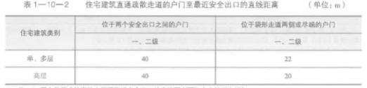 ( 8 )住宅建筑的安全疏散距離應符合表 1一 10-2 的規(guī)定。