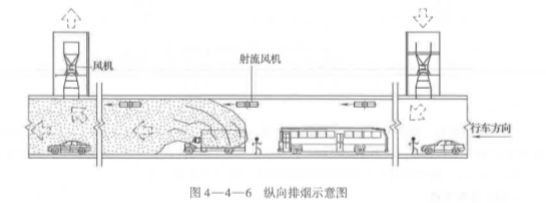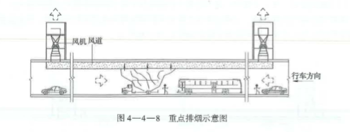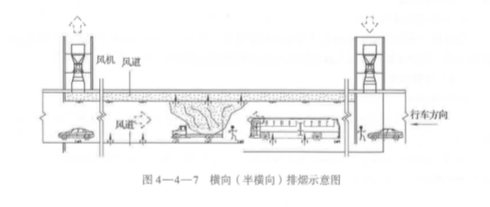 橫向(半橫向)排煙方式適用于單管雙向交通或交通量大、 阻塞發(fā)生率較高的單向交通隧道。