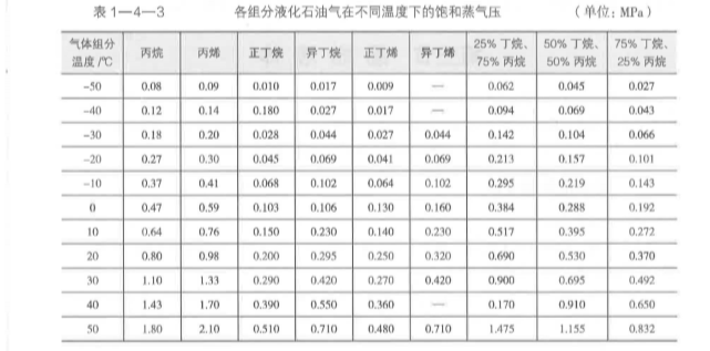( 3 )在體積不變時,氣體的溫度與壓力成正比,即溫度越高,壓力越大。這就是說,當(dāng) 儲存在固定容積容器內(nèi)的氣體被加熱時,溫度越高,其膨脹后形成的壓力就越大。如果盛裝 壓縮或液化氣體的容器(鋼瓶)在儲運(yùn)過程中受到高溫、暴曬等熱源作用時,容器內(nèi)的氣體 就會急劇膨脹,產(chǎn)生比原來更大的壓力。當(dāng)壓力超過了容器的耐壓強(qiáng)度時,就會引起容器膨 脹甚至爆裂,造成傷亡事故。因此,在儲存、運(yùn)輸和使用壓縮氣體和液化氣體的過程中,一 定要注意采取防火、防曬、泄壓、隔熱等措施;在向容器內(nèi)充裝時,要注意極限溫度和壓力, 嚴(yán)格控制充裝量,防止超裝、超溫、超壓。表 1-4-3 列出了各組分液化石油氣在不同溫度 下的飽和蒸氣壓,可從中看出溫度對壓力的影響程度。