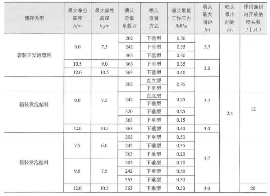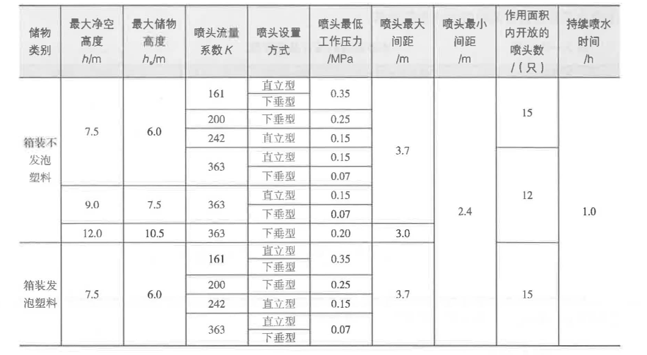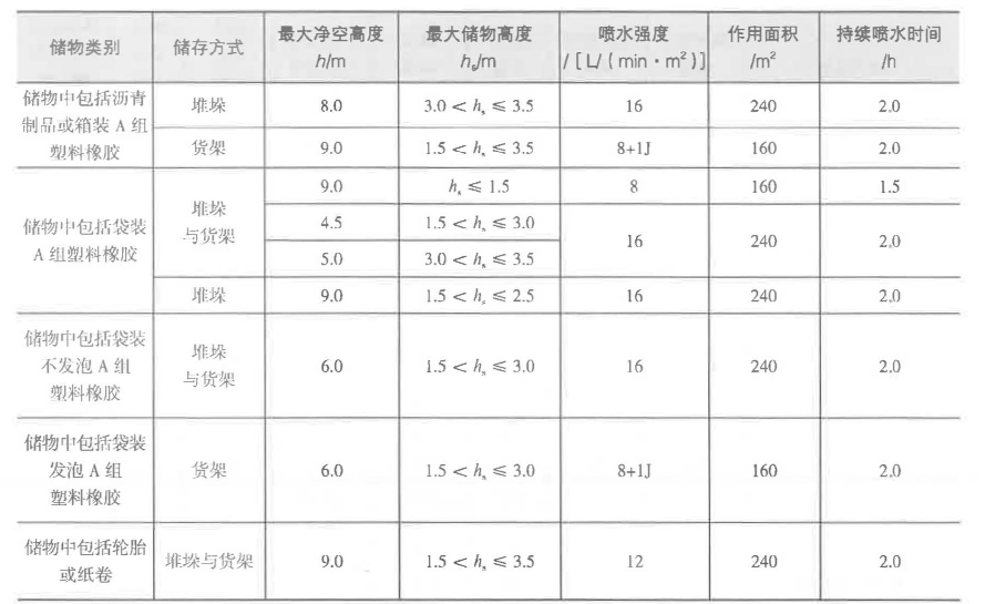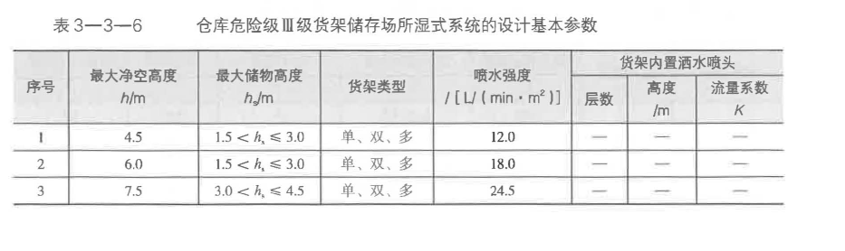 2. 本表及表 3-3-5 、 表 3-3一日中字母 "J" 表示貨架內(nèi)置灑水噴頭, "J" 前的數(shù)字表示貨架內(nèi)置淚水噴頭的層數(shù)。