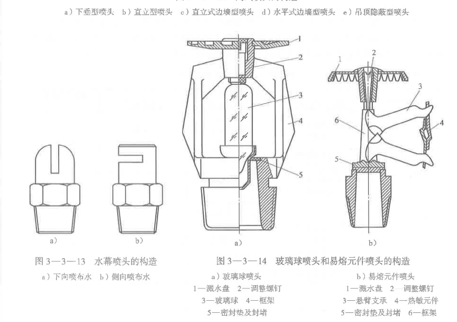 (3)對(duì)于水幕系統(tǒng),防火分隔水幕應(yīng)采用開式灑水噴頭或水幕噴頭,防護(hù)冷卻水幕應(yīng)采用水幕噴頭。