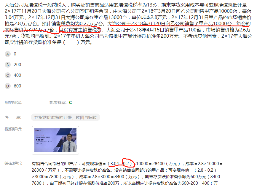首先,即使題目表明沒有發(fā)生銷售稅費,但在解析中減去0.2可能是因為以下幾個原因: