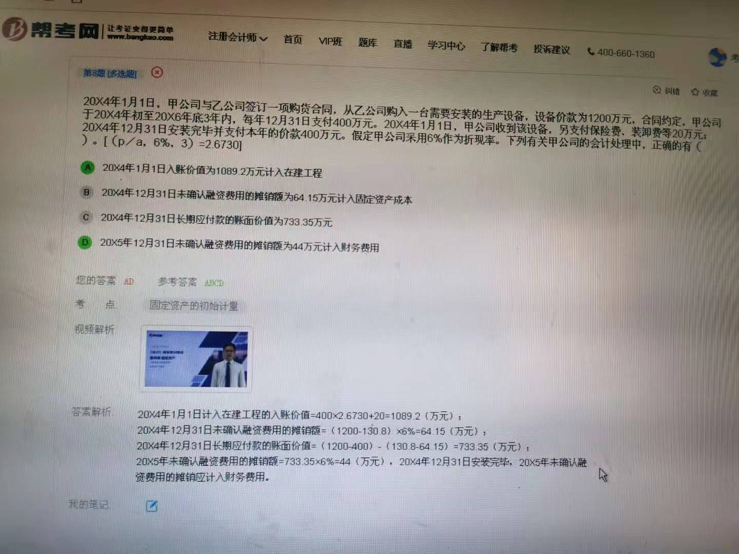 400(融資本金)* 2.6730(可能是年化利率)* 0.06(6%的費(fèi)用率或稅率)= 6.546(這個(gè)結(jié)果是每期應(yīng)確認(rèn)的融資費(fèi)用)