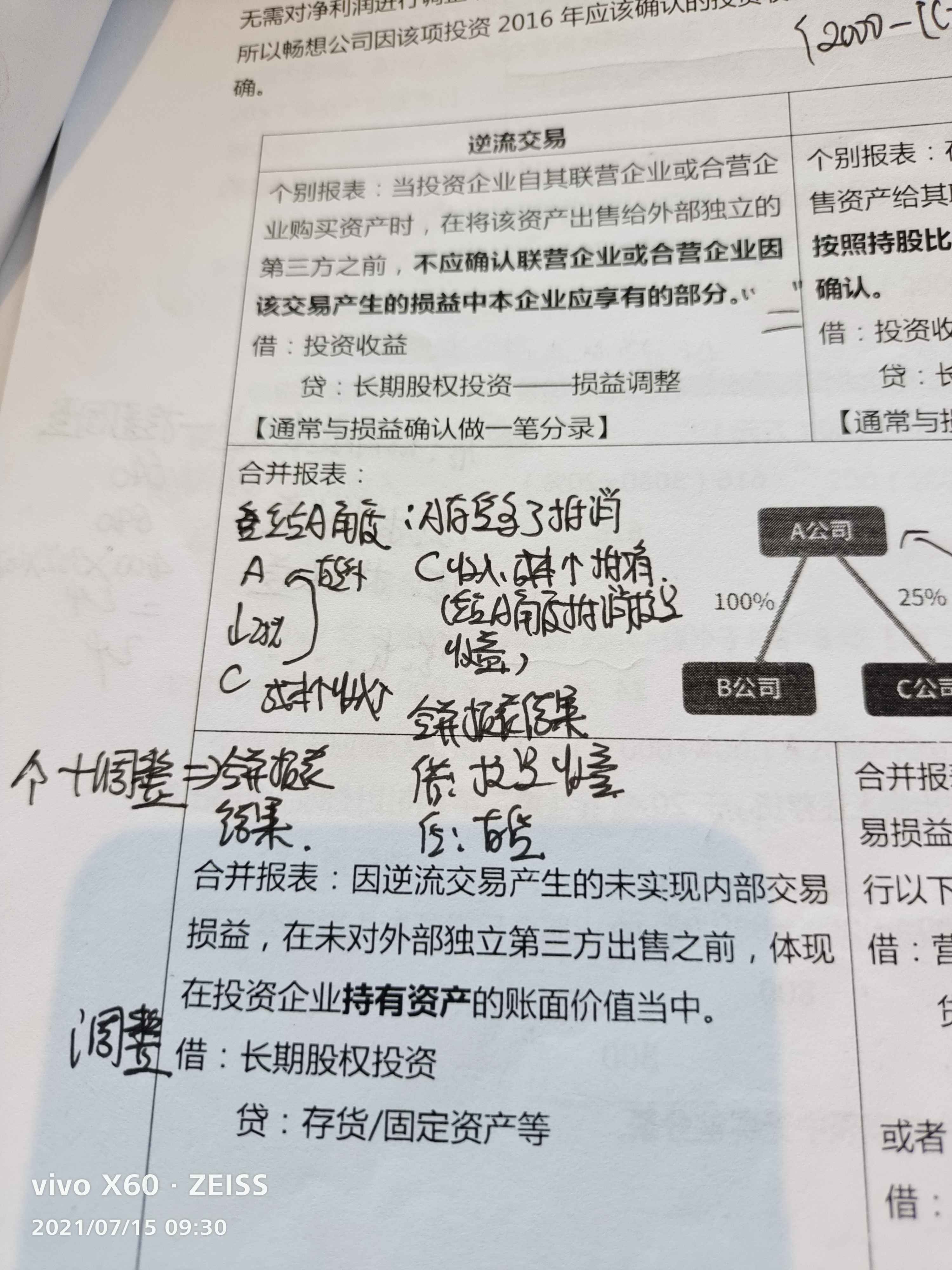 - 投資收益逆流調整關注的是內部交易對投資收益確認的影響。
