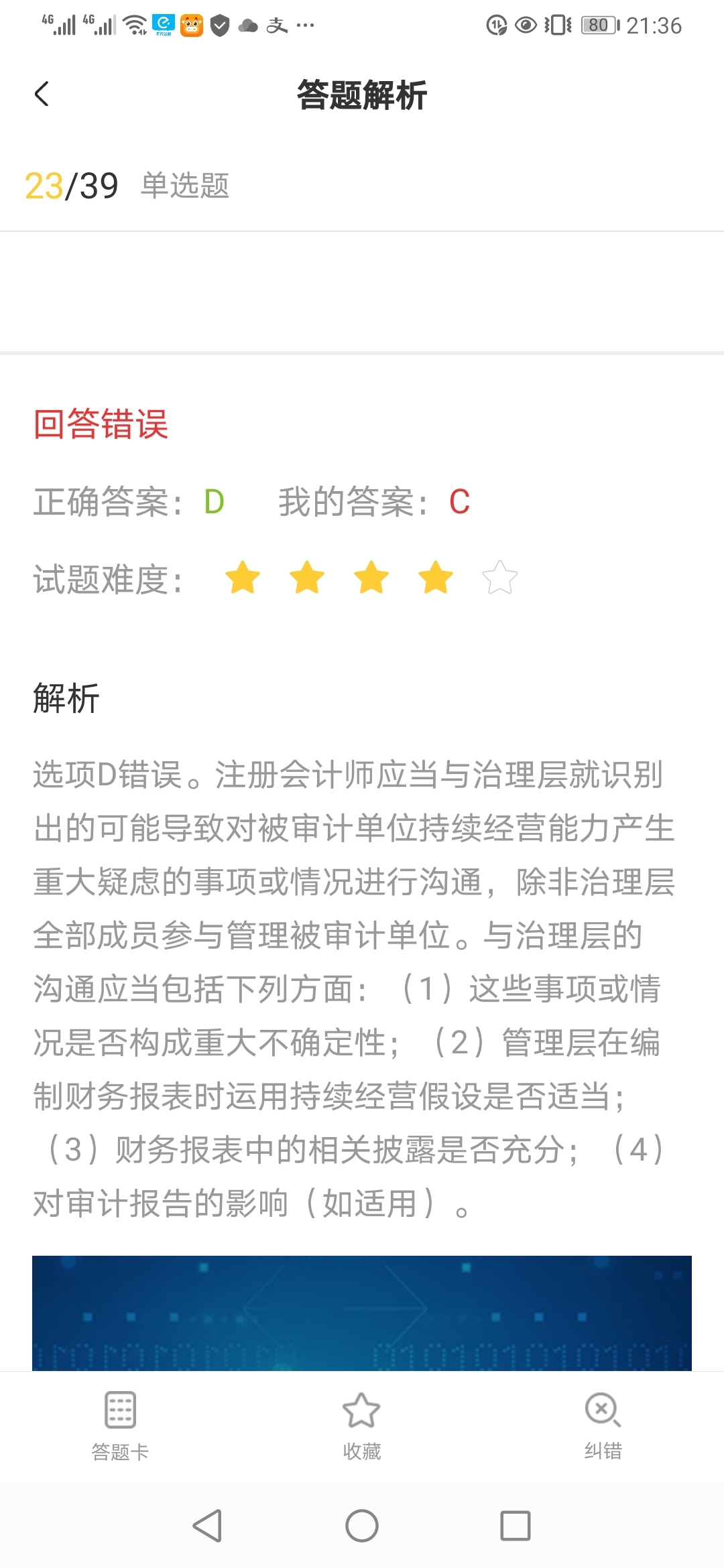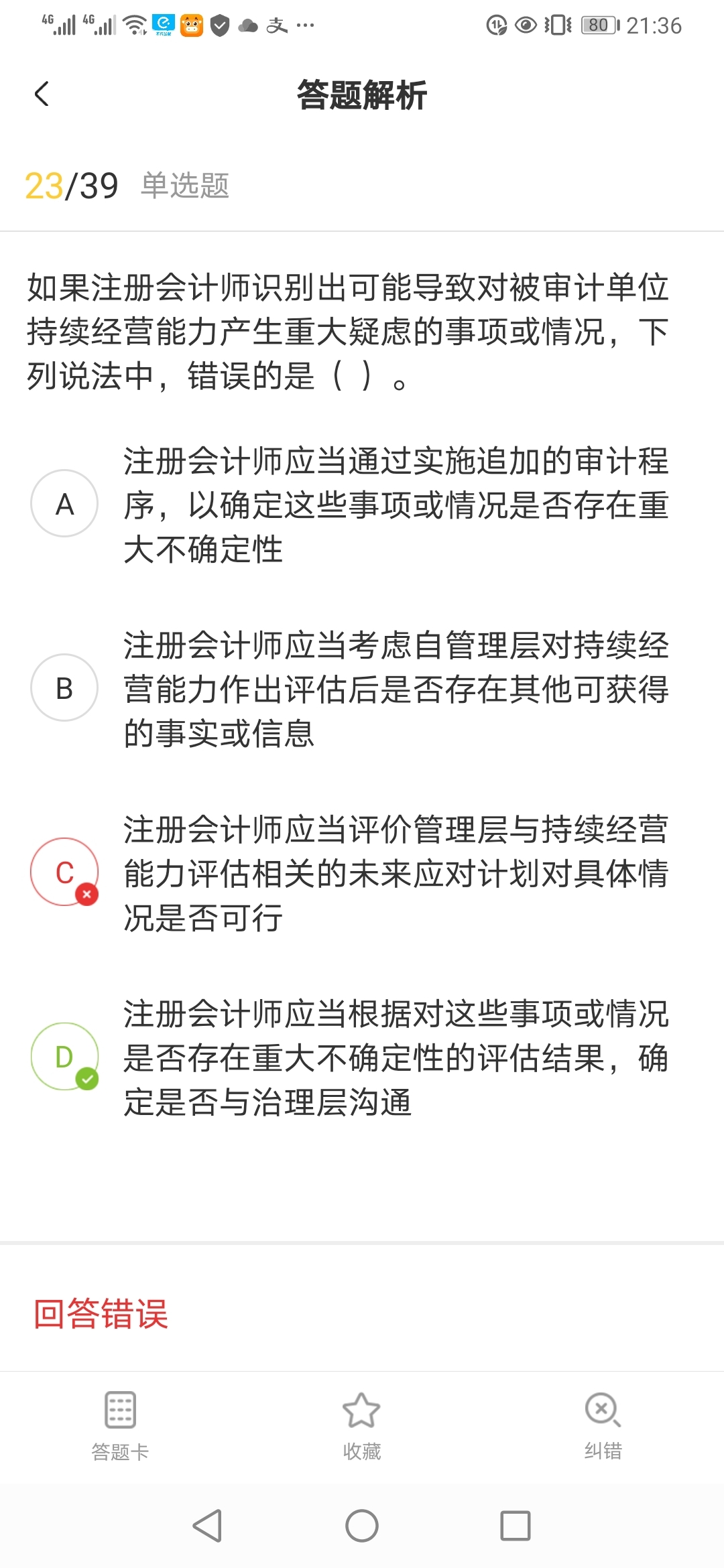 2. **與治理層溝通的重要性:** 在許多情況下,做出決策時需要考慮治理層的意見和指導(dǎo)。如果D選項沒有提到或者忽視了與治理層溝通的必要性,那么它可能因此被判為錯誤。