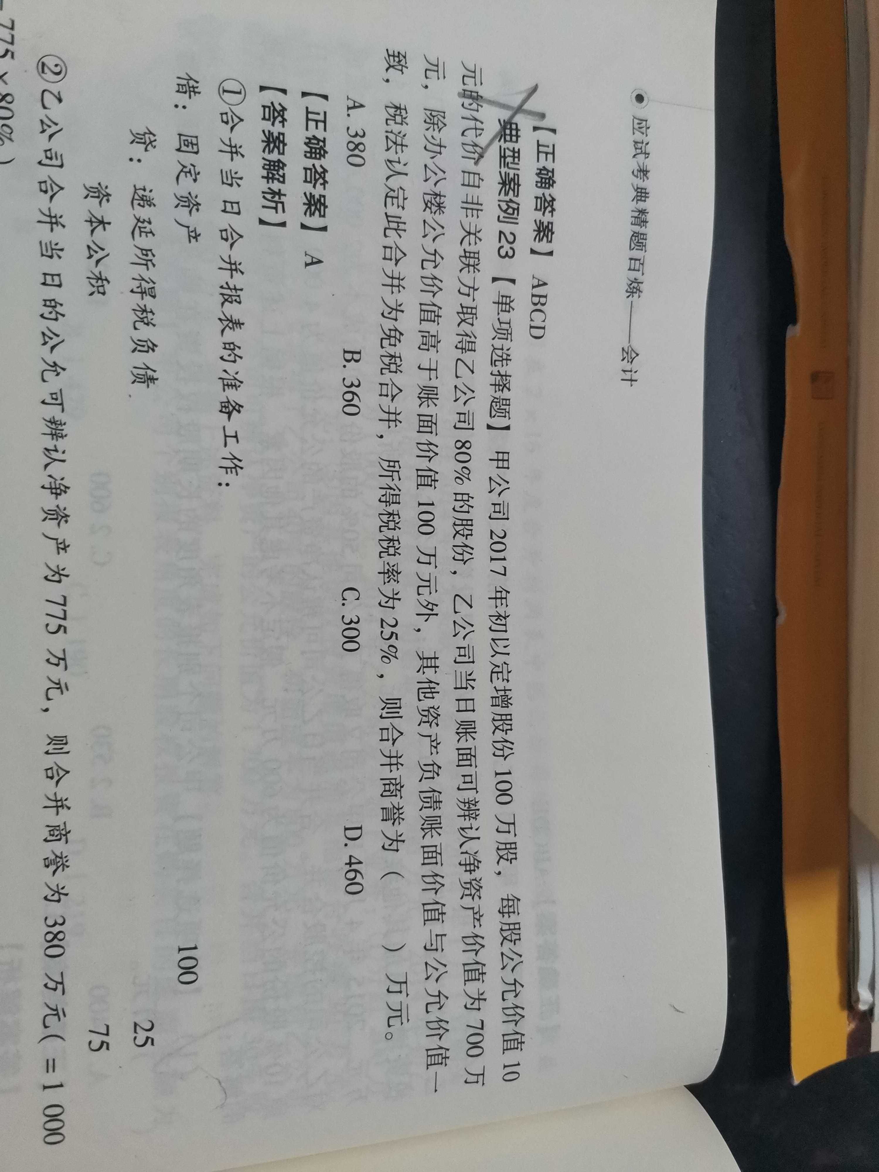 - “800”可能指的是被并購(gòu)企業(yè)的凈資產(chǎn)賬面價(jià)值。