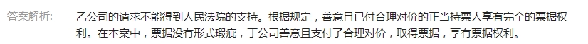 老師,這道題,我可以答:丁公司受到抗辯切斷制度的保護,可以嗎?而且,我覺得,這道題的答案解析,用善意取得,不合理,因為丙公司是獲得票據(jù)權(quán)利的啊,丙公司是有權(quán)處分的?