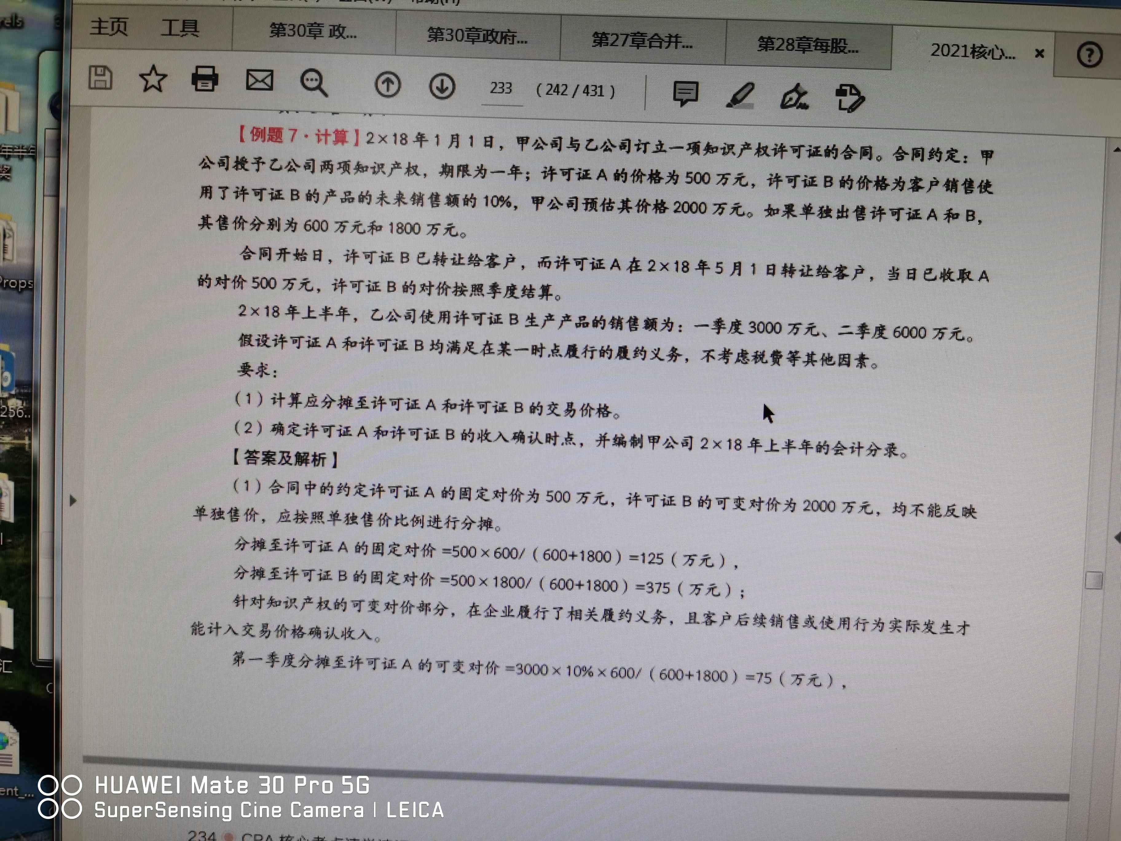 在題中收到A的對價500萬,雖然是A的固定對價,但需要和B分攤的可能原因如下: