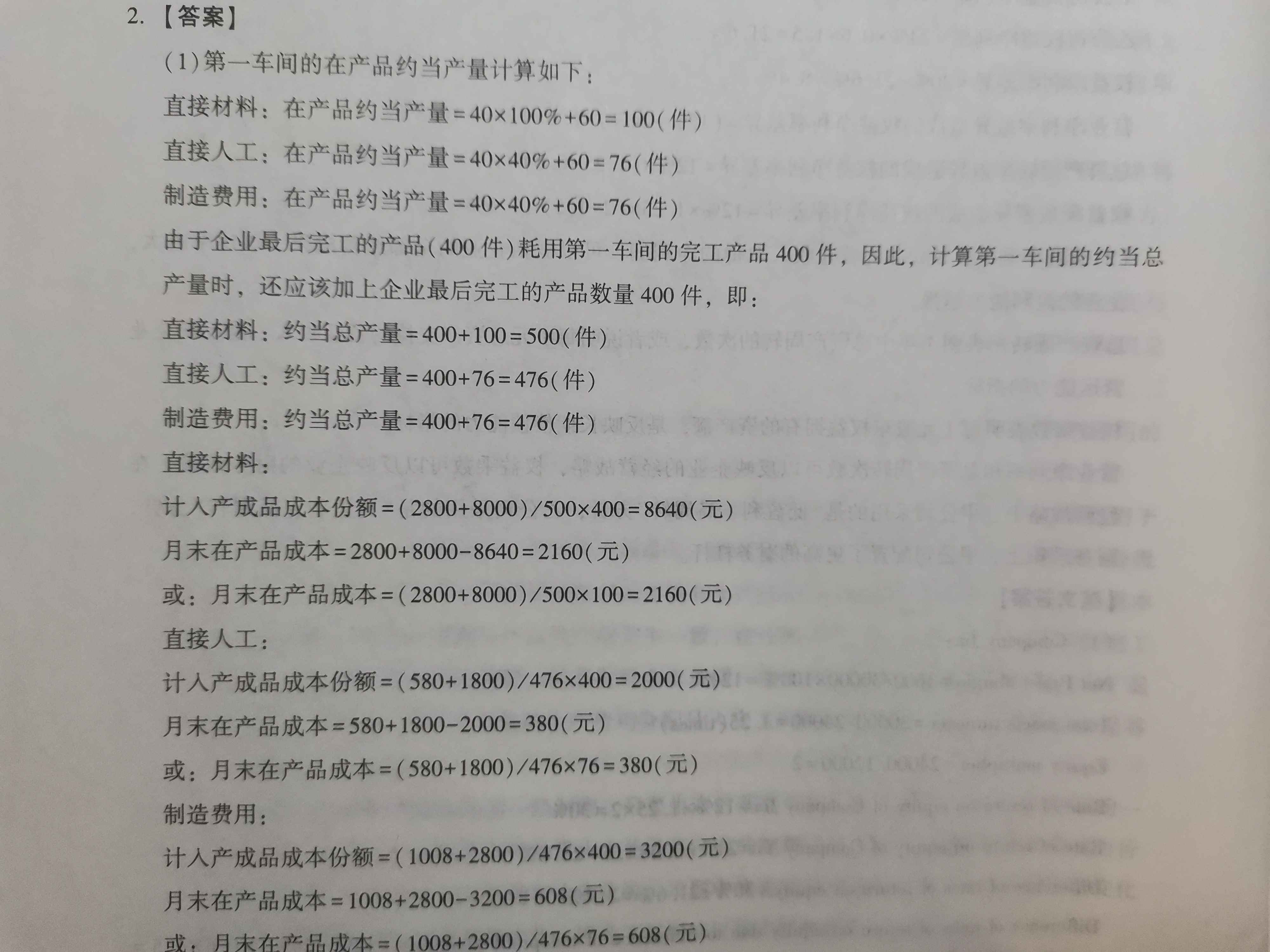 老師你好,圖一是題干,圖二是一問的答案,我想問一下第1個答案里約當(dāng)產(chǎn)量后面+60,這個60是怎么來的?謝謝