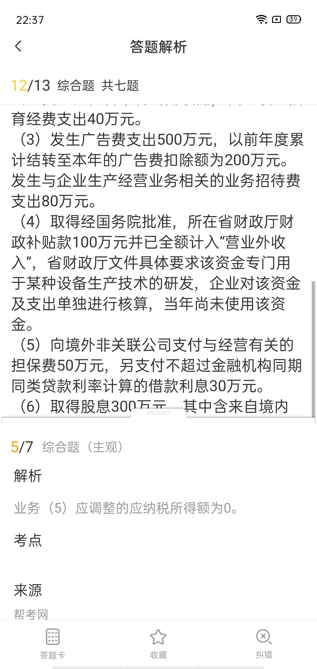 2. **成本與收入的匹配原則**:稅法要求企業(yè)的成本費(fèi)用與收入相匹配。如果業(yè)務(wù)5的收入已經(jīng)被相應(yīng)的成本費(fèi)用完全抵消,那么在計(jì)算應(yīng)納稅所得額時,這一業(yè)務(wù)的調(diào)整額可能會是0。