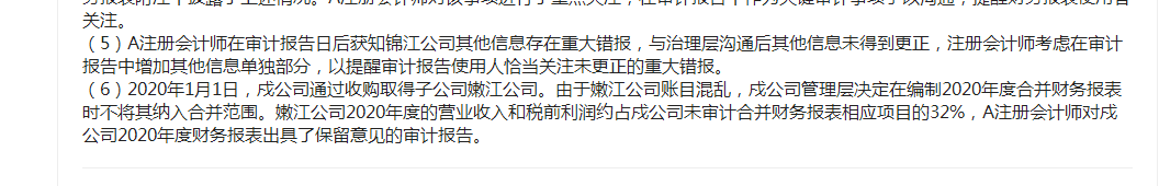 2. 然而,所謂的“提醒審計報告使用者恰當(dāng)關(guān)注未更正的重大錯報”不僅僅是增加一段提醒文字那么簡單。注冊會計師應(yīng)當(dāng)綜合考慮以下因素: