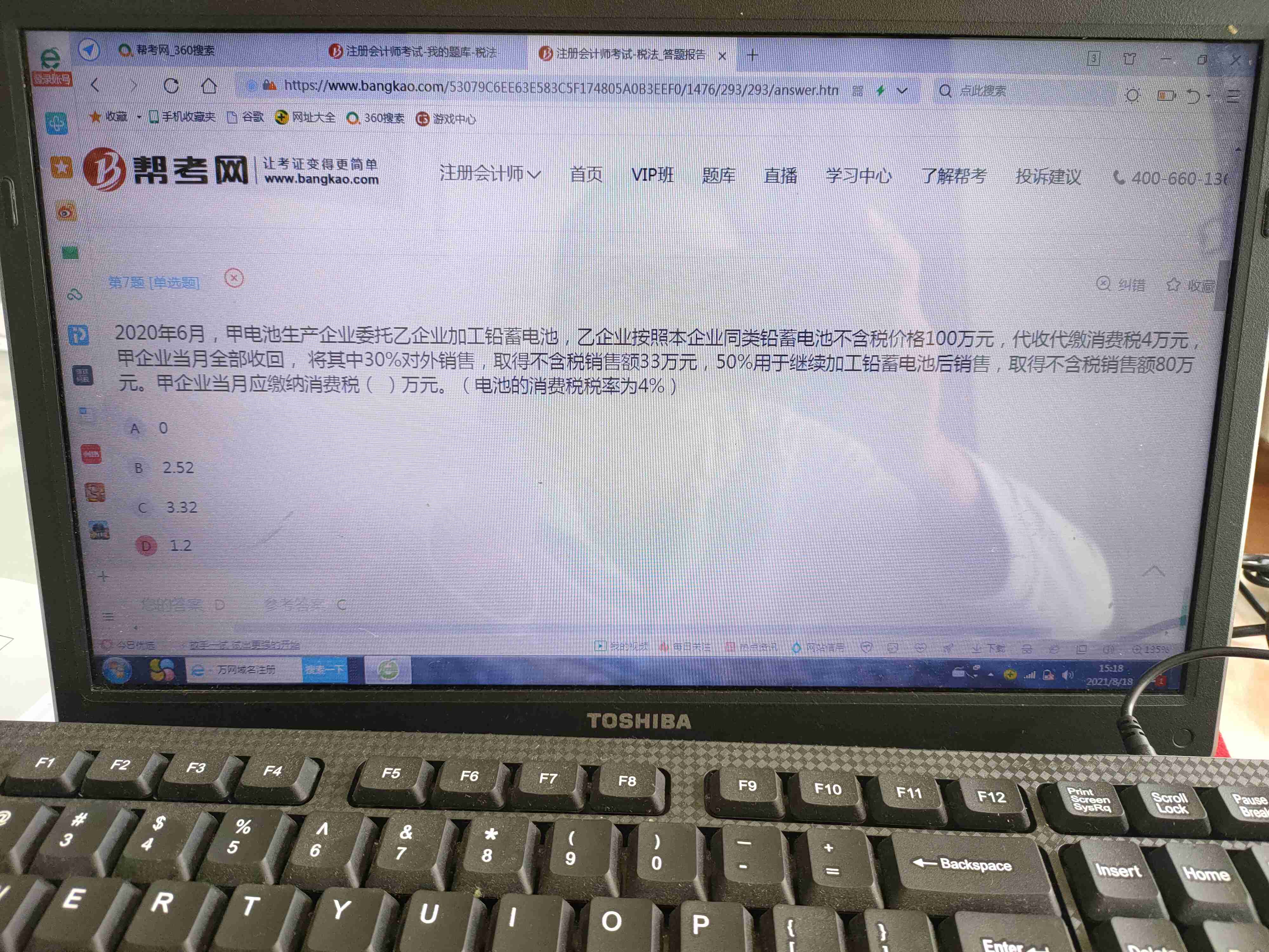 幫考網(wǎng)校·2022-02-212022年注冊會計師考試《稅法》歷年真題精選0221