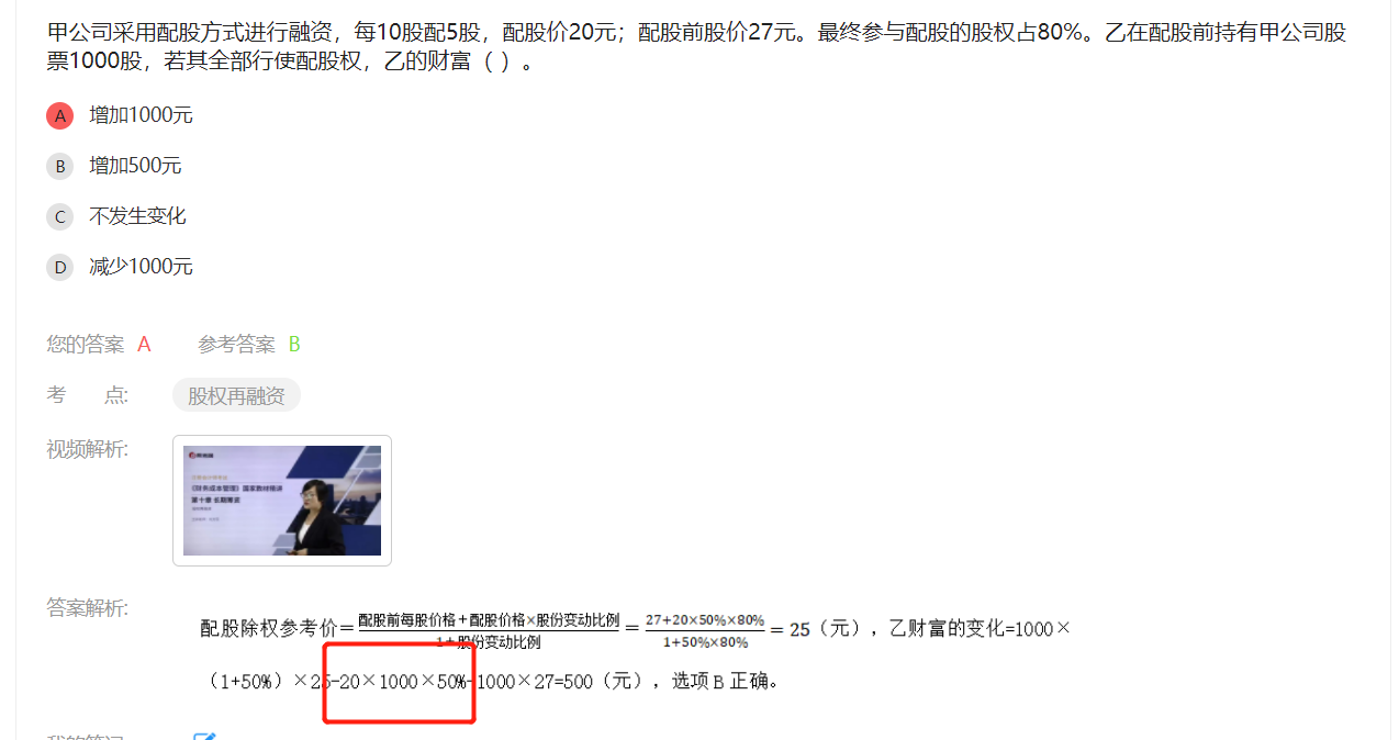 希望這樣的解釋能夠使您完全理解配股計算方式中包含“-20*1000*0.5”這一步驟的原因。如果還有其他疑問,歡迎繼續(xù)提問!我會耐心為您解答。