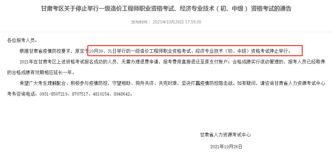 重要通知:2021年中級經(jīng)濟(jì)師甘肅考區(qū)取消考試!