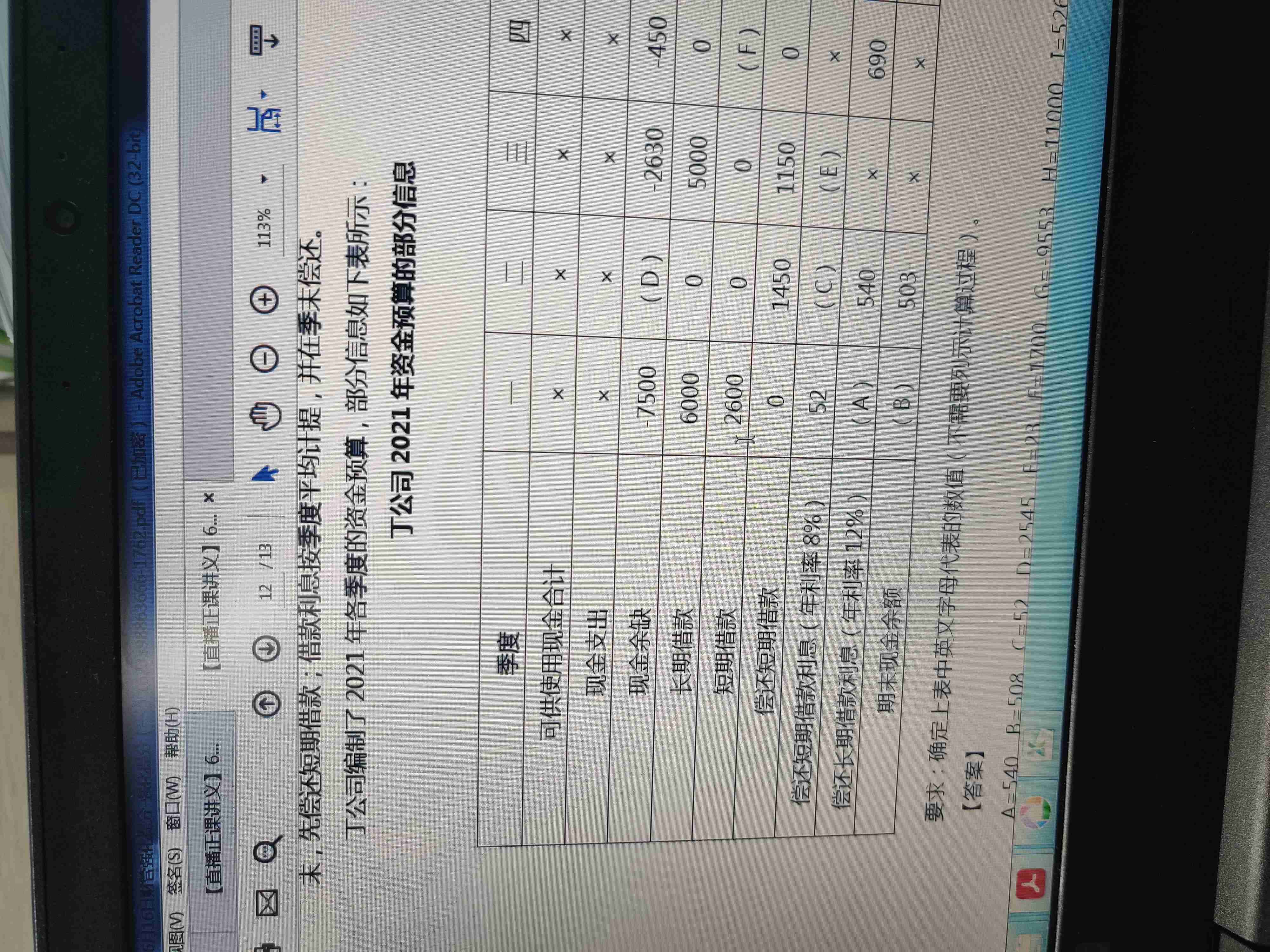 考友21744361·2022-01-06如圖 求 F 短期借款 -450+F-F*8%/4-690=560 哪里錯了